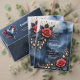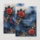 Elegante arreglo rosa con follaje dorado sobre un fondo de color azul oscuro. Un diseño elegante y decorativo con rosas rojas, hojas oscuras y acentos dorados sobre un fondo de color azul profundo y acuarela. El delicado marco dorado y la distribución equilibrada de las flores le confieren un encanto refinado y sofisticado. Perfecto para todo aquel que ame el elegante arte floral, los rosas románticos y los lujosos contrastes de color. Ideal para el arte en la pared, decoración en casa, accesorios de moda y regalos con un toque de sofisticación.