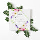 Boda RSVP en una temática floral con colores bonito elegantes y suaves de púrpura, rosa, blanco y verde, Tarjetas RSVP minimalistas florales simples pero elegantes.