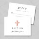 Tarjeta RSVP Personalizada Elegante Religiosa Floral Cruz Rosa Baptism.