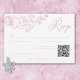 Eleva tu día especial con nuestra elegante y vintage tarjeta de respuesta boda de estilo barroco con código QR, una obra maestra de la elegancia eterna. Con una delicada frontera polvorienta y rosa chinoiserie francesa, con delicadas flores de arte en línea sobre un fondo blanco inmaculado, este diseño desprende un encanto y una sofisticación clásicos. Su sencillez resalta sus detalles refinados, creando un diseño tan elegante como su historia de amor. Ideal para los amantes de la tradición y la elegancia. Creado por Simply Farmhouse Press.