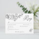 Eleva tu día especial con nuestra elegante y vintage tarjeta de respuesta boda de estilo barroco con opciones de cena, una obra maestra de la elegancia eterna. Con una delicada franja de chinoiserie negra francesa con delicadas flores de arte en línea y una mariposa sobre un fondo blanco inmaculado, este diseño desprende un encanto y una sofisticación clásicos. Su sencillez resalta sus detalles refinados, creando un diseño tan elegante como su historia de amor. Ideal para los amantes de la tradición y la elegancia. Creado por Simply Farmhouse Press.
