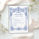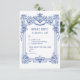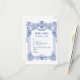 Elegante Tarjeta RSVP de Boda Azul Barroco floral de la Columna Azul.