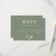 Esta tarjeta de respuesta RSVP presenta un detalle sencillo y delicado de una rama de olivo en un fondo verde. Se trata de un espacio de belleza natural y elegancia que transmite el encanto mediterráneo. Para añadir un toque personal, la parte trasera de la tarjeta muestra un marco redondo con las iniciales de la pareja, adornadas con ramas de olivo. Esta tarjeta no sólo es una manera funcional de confirmar la asistencia, sino también un impresionante keepsake que capta la esencia de una celebración mediterránea. No cabe duda de que dejará una impresión duradera a sus huéspedes.