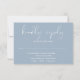 Esta elegante tarjeta de respuesta de boda en azul polvoriento puede ser personalizada con su información en tipografía chic. Diseñado por Thisisnotme©