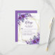 Aquí, este diseño tiene un patrón floral botánico violáceo y púrpura con marco geométrico de flujo dorado. Todos los detalles de estas tarjetas rsvp son fácilmente personalizable, solo tiene que hacer clic en el botón de personalización. Esta tarjeta en el lado posterior tiene un fondo elegante morado oscuro.