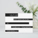 Esta elegante tarjeta de respuesta en blanco y negro es perfecta para una boda moderna. el diseño simple presenta caligrafía blanca elegante sobre rayas negras en un fondo blanco.