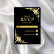 Tarjeta De Confirmación De Asistencia Elegante Boda negro dorado