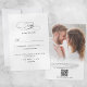 Nuestra elegante Tarjeta de RSVP de Caligrafía en Blanco y Negro con selección de comida presenta un diseño atemporal. Contra un fondo blanco, las fuentes y elementos negros crean un aspecto sofisticado. El reverso muestra una plantilla de foto personalizable con un efecto de borde desvanecido romántico, junto con un código QR que dirige a los invitados al sitio web de su boda. Esta adición proporciona acceso fácil a información importante, lo que hace que sea conveniente para que sus invitados se mantengan informados sobre su día especial. Esta Tarjeta de RSVP de Boda con Caligrafía Minimalista Simple combina la tendencia con el estilo. Personalícela con la información de RSVP para reflejar sus preferencias únicas. Eleve la papelería de su boda con este diseño moderno, asegurando que cada detalle sea memorable.