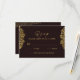Esta tarjeta RSVP lleva una estética elegante y lujosa que complementa perfectamente el conjunto de invitados a la boda. El fondo es un marrón profundo y rico que realza los patrones dorados de damasco colocados simétricamente en ambos lados. El diseño del damasco es muy ornamental, con curvas de flujo, agitaciones florales y detalles complejos que le confieren un aspecto majestuoso de inspiración barroca. El oro brillante contrasta maravillosamente con la base oscura, haciendo que los bordes decorativos destaquen mientras enmarca el texto en el centro. La tipografía también contribuye al diseño refinado. Una mezcla de caligrafía cursiva y tipos de letra serif clásicos en oro lo une todo, asegurando la armonía con los acentos damascos. El acondicionamiento es limpio y depurado, con obras de arte doradas que aportan riqueza sin abrumar la tarjeta. En general, esta tarjeta RSVP está diseñada para proyectar sofisticación, tradición y elegancia, con los elementos damascos dorados como su característica más llamativa, convirtiendo una carta de respuesta simple en una declaración de estilo y lujo.