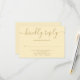 Una simple tarjeta de respuesta con guión elegante ranúnculo amarillo y dorado con tus datos en tipografía chic. Diseñado por Thisisnotme©