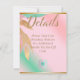 Completa tu suite de papelería boda con nuestra elegante tarjeta de detalles de la suite Boda verde pastel rosado y marrón. Esta hermosa tarjeta presenta un diseño abstracto en rosa pastel y verde marino, realzada con elegantes acentos dorados. La tarjeta de detalles es un componente esencial de la papelería de su boda, que proporciona información importante sobre su día especial. Tanto si se trata de detalles de alojamiento, itinerario de bodas o cualquier otra información relevante, esta tarjeta le permite comunicar todos los detalles necesarios a sus huéspedes de una manera elegante y sofisticada. Cada tarjeta de detalles está meticulosamente elaborada, mostrando un diseño moderno y artístico que complementa su temática boda general. El patrón abstracto y la delicada paleta de colores de color rosa pastel y verde marino crean una tarjeta visualmente impresionante que añade una capa extra de elegancia a su papelería boda. Personalice esta tarjeta de detalles con su texto personalizado, asegurándose de que refleje sus detalles y estilo de boda únicos. Con opciones de personalizable, puede incluir la información necesaria, como direcciones de la sede, horarios de ceremonia y recepción, detalles del transporte y más. Nuestra elegante tarjeta de detalles de la suite Boda verde pastel rosado y marrón elegante es más que una tarjeta de información; es un papel boda que añade sofisticación y garantiza a sus huéspedes toda la información necesaria para su día especial. Mejore su experiencia de planificación de bodas con nuestra elegante tarjeta de detalles de Boda verde pastel rosado y marrón. Con su diseño moderno, opciones de personalizable y acentos elegantes, esta tarjeta es la adición perfecta a su colección de papelería boda. Comunica los detalles de su boda con estilo y elegancia, dejando una impresión duradera a sus huéspedes.