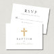 Tarjeta RSVP Personalizada Elegante Sage Green Religious Cross Boy Baptism.