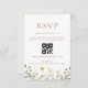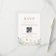 Boda tarjeta RSVP con sitio web y código QR con elegante diseño de flor silvestre sobre fondo de color neutro.