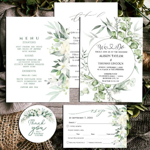 Greenery White Floral Calligraphy Diseñado por Rose Art