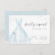Las tarjetas de RSVP de Quinceañera elegantes presentan un vestido azul claro de acuarela con detalles de brillo plateado falso, genial para la fiesta de cumpleaños de los dulces 15.