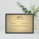 Complemente las invitaciones de fiesta de negro y dorado con elegantes tarjetas de respuesta RSVP. Todo el texto de esta plantilla es simple de personalizar o eliminar según sea necesario. La tarjeta incluye opciones de comida y la opción de responder a través del sitio web o correo electrónico. El diseño negro y dorado cuenta con un fondo de lámina falsa y tipografía inspirada en el art déco vintage. Esta tarjeta de nota de anuncio es una forma elegante de pedirle a amigos y familiares que respondan a la celebración de su próximo día especial. Tenga en cuenta que el dorado es el color impreso, no lámina metálica.