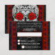 Encaje Elegante Cráneo de Azúcar día de Muertos RSVP en Rojo es una excelente opción para tu boda alternativa. Esta tarjeta de respuesta presenta un fondo con estampado de cachemir negro con una superposición sutil de un cráneo de azúcar con flores de clavel rojas en sus ojos. El borde de encaje hace que esta invitación alternativa se destaque con elegancia y presenta fuentes y estilos divertidos. Una excelente tarjeta de respuesta de Calaveras para boda que hará que todos tus invitados de la boda digan ¡sí! en tu gran día.