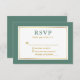 Moderna y elegante tarjeta de RSVP Eucalyptus Minimalista Verde y Boda Blanca. Marco dorado.
