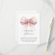 Exhibición de 'ella está atando el nudo', tarjeta de inserción de invitación para regadera de boda con un lazo rosa. Eleva tu celebración con nuestro tema de regadera de boda soñador y coqueto. Diseñado exclusivamente para la futura novia, este tema combina una paleta de color rosa suave con un detalle de lazo rosa encantador que refleja perfectamente la esencia de la romance moderna. Combina fácilmente con cualquier artículo de nuestra colección para obtener el aspecto estético completo.