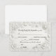 Set the tone for your formal affair with this classically elegant response card, featuring a luxurious, faux embossed floral design in a sophisticated ivory palette.This design features an ornate, monochromatic border of intricate rosebuds and traditional botanical leaves rendered in a simulated bas-relief style. The color palette is a sophisticated blend of creamy ivory and clean white background, with subtle grey shading that creates a convincing 3D sculpted paper visual around the formal calligraphy script and small caps serif text.This is a flat printed image with a faux raised texture effect, not actual raised or pressed material.