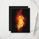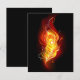 Una brillante pluma de pavo real hecha de fuego y llama sobre fondo negro.