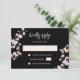 Esta elegante tarjeta de respuesta de boda presenta hermosas flores de cerezo de color rosa rubor sobre un fondo negro. Invitación a juego disponible.