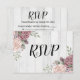 Estas tarjetas de respuesta de boda tienen rosas grandes en tonos de rosa claro y rosa polvo sobre un fondo de madera blanca. Puede personalizar el estilo y el color de la fuente a su gusto. Esta es parte de una suite de boda a juego que se puede personalizar completamente.