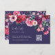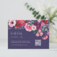 Tarjeta RSVP Floral Azul de Marina. Recopile respuestas sin esfuerzo con esta tarjeta RSVP elegantemente diseñada, con un fondo azul marino atemporal y un texto de marfil sofisticado. Un cómodo código QR en la parte delantera permite a los clientes ver RSVP rápidamente en línea, haciendo la planificación más sencilla y eficiente. El patrón de coordinación de la parte posterior añade un toque pulido, asegurando que esta pieza se combine perfectamente con su suite boda. Personalizable con su elección de texto, estilos de fuente y tamaños, esta tarjeta RSVP es una combinación perfecta de elegancia clásica y comodidad moderna. Simplifique la planificación de su boda, manteniendo todos los detalles perfectamente coordinados.