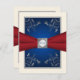 Esta tarjeta de confirmación de asistencia floral roja, marfil y azul marino con inspiración militar con una cinta impresa en rojo oscuro y medallón de plata con relieve falso coincide con la invitación de boda que se muestra a continuación. Todo el texto es personalizable y también la elección del papel. Si necesita otros elementos coincidentes en este mismo diseño, por favor envíe un correo electrónico a niteowlstudio@gmail.com.