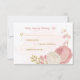 Flores rosadas y blancas románticas con hojas de oro tarjeta de respuesta boda botánica. Los detalles del purpurina se simulan.