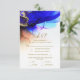 Una magnífica tinta de alcohol lavó la boda RSVP con un sorprendente e inusual trasfondo. Esta elegante suite nupcial ofrece un lavado artístico de tintas en amatista, azul, naranja y oro. Añade fácilmente tus opciones de comida para la recepción de bodas usando la herramienta de personalización de Zazzle. Magnífica tarjeta RSVP de Boda Dorada Naranja Azul Índigo. Consulte la colección para ver los elementos coincidentes.