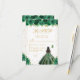 This elegant and glamorous sweet sixteen rsvp card features a beautiful princess with dark hair and dark skin in a green ball gown. The text combines handwritten script and modern sans serif fonts for a classy and sophisticated look. The floral arrangements, butterflies and gold confetti create the perfect blend of rustic and chic.