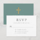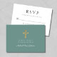 Tarjeta De Confirmación De Asistencia Green Religious Cross Boy First Communion