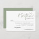 Sencillo y moderno color verde sabio, corazón tipográfico al estilo caligráfico, fuente serif con tarjeta RSVP de elección de comida.