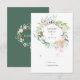 Esta elegante tarjeta de respuesta de boda botánica se puede personalizar con la información de su día especial de boda, con una delicada guirnalda de rosas florales de acuarela y vegetación. El reverso presenta una guirnalda floral a juego que enmarca sus iniciales de monograma en texto blanco elegante sobre un fondo verde bosque o agrega información adicional como la selección de menú. Diseñado por Thisisnotme©