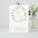 Con una guirnalda de laurel decorativa que rodea un borde de falso papel de aluminio dorado. Esta tarjeta de respuesta de botánica chic se puede personalizar con la información de respuesta especial y los nombres de la feliz pareja en el reverso. ¡Perfecto para bodas, fiestas de compromiso, celebraciones de aniversario y otros eventos especiales durante todo el año! Diseñado por Thisisnotme©