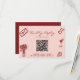 A simple and elegant calligraphy colorful retro QR Code wedding rsvp card. As you see it has a vintage modern pink background with burgundy hand written script and deep red hand painted elements. And customizable QR code on the front. You can edit it by clicking on the personalize button.