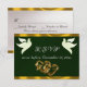 Design features linked hearts and doves on an emerald green background with ribbon borders, stylish script place holders for the date on the front, and response information on a white pearl back. Perfect for the simple to most elegant wedding. Available in several colors for your wedding theme. (Ribbon is simulated in the artwork). Designed to coordinate with the "Two Shall Become One - Silver & Gold" Wedding Collection. To change details, click «Personalize». To move the text or change the text size, font, or color click «Click to customize further»