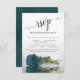 Esta hermosa tarjeta RSVP presenta un diseño sencillo y elegante con un único rosa verde azulado de tallo largo o de color turquesa reflejado en una piscina de agua con olas y olas. El título está escrito en caligrafía de escritura de encaje y hay espacio para que sus invitados indiquen el número total de asistentes y su elección de comida.