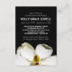 Hermosa invitación al servicio conmemorativo que incluye una foto de primer plano de una magnolia con un fondo limpio y negro.