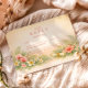 A soft parchment backdrop is framed by lush tropical greenery and coral hibiscus blooms, creating a fresh yet elegant celebration aesthetic. Delicate plumeria accents and airy palm leaves bring a warm, destination-inspired feel, while the classic typography keeps the layout refined and timeless. A subtle graduation cap detail grounds the design with just the right academic touch.