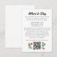 Perfecto para una boda de destino o sólo una de temática mexicana, esta tarjeta de recinto de hotel totalmente personalizada ofrece texto fácil de personalizar para compartir información de fin de semana boda con sus invitados, así como un código QR personalizado que los dirige a su sitio web boda para más detalles. Se incluyen flores de acento pequeño y follaje inspirados en el bordado colorido de artesanos nativos mexicanos, que se coordinan perfectamente con el resto de la suite.