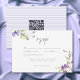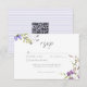 Anuncia tu día con esta tarjeta de respuesta de boda romántica del Jardín de flores silvestres de lavanda con un código QR, que presenta delicadas flores de acuarela sobre un fondo de lavanda suave. Perfecto para una boda de jardín en primavera o verano, este hermoso diseño ofrece una estética caprichosa y natural. Esta invitación romántica es totalmente personalizable y establece un tono suave y encantador para tu celebración. Creado por Simply Farmhouse Press.