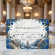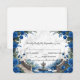 Traslade a sus invitados a una mansión romántica junto al lago. Esta elegante tarjeta de respuesta presenta flores de acuarela de color azul profundo y una vista de jardín escénico para establecer el tono. Este diseño muestra una ilustración simétrica y serena de acuarela de una gran escalera de piedra que conduce a un lago tranquilo, completo con cisnes blancos elegantes y un pequeño bote de madera. La escena está enmarcada por arreglos de esquina exuberantes de rosas azules y azules marinos, acentuados con sombras grises frescas y follaje verde apagado. El fondo utiliza un efecto de piedra de mármol impreso suave para agregar profundidad y sofisticación sin el costo de cartulina pesada. Esta es una imagen impresa plana con un efecto de mármol falso, no una piedra o textura real elevada.