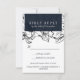 Diseñado para coincidir con nuestra nueva colección de bodas florales Modern Garden para 2019, este elegante y contemporáneo Rsvp de bodas presenta un fondo de flores delineadas en blanco y negro. Los detalles del boda se muestran en blanco contra un elemento rectangular azul de medianoche. Un diseño moderno y atemporal perfecto para celebraciones formales en cualquier época del año. El texto de aceptación/rechazo de su personalizado aparece debajo en negro contrastante. Personaliza tus opciones de comida o entradas a lo largo de la parte inferior para que los clientes indiquen con antelación su preferencia por la comida. Para obtener ayuda o solicitar personalizado, póngase en contacto con nosotros a través de la tienda o escriba un correo electrónico en citronelladesing@gmail.com
