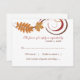 La tarjeta de respuesta puede ser personalizar con la fecha de respuesta y la redacción preferida acepta/lamenta. Nuestra papelería boda "Caídas" presenta hojas de otoño saturadas y remolinos de desplazamiento. Los colores incluyen naranja, cobre, marrón, rojo y oro.