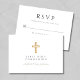 Tarjeta RSVP Personalizada De La Cruz Religiosa Verde Sage Moderna. Parte de la Suite Elegante Sage Green Religious First Communion con invitación, papelería y accesorios de fiesta disponibles.