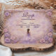This elegant quinceañera design features a dreamy lavender watercolor background framed by lush roses and ornate gold details, with a graceful gown illustration creating a soft fairytale atmosphere. The pastel purple palette, romantic florals, and refined composition give the design a luxurious yet youthful feel, perfect for a classic quinceañera celebration with an enchanted, elegant aesthetic.