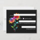 This RSVP card from the Petals & Pride collection is designed to celebrate love with clarity, color, and care. Set against a rich black background, it features radiant rainbow florals in translucent hues of pink, orange, yellow, green, and blue—symbolizing unity and joy. Guests can confirm or decline attendance, share any special dietary requirements, and even request a favorite song to help shape the soundtrack of your celebration. It’s a vibrant, inclusive way to gather meaningful responses while keeping the experience personal and festive. Matching items available to complete your suite with pride and style.