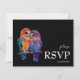 Presentamos la tarjeta RSVP de boda de "Unidad Eterna". Esta tarjeta RSVP está elegantemente diseñada con fascinantes obras de arte de la colección "Eternal Unity", que incluye dos intrincadamente representadas lechuzas que se enfrentan entre sí en medio de un llamativo fondo negro. Los búhos simbolizan la unidad, la inclusión y el amor duradero, creando un impresionante efecto visual en el fondo. En la parte superior de la tarjeta, la palabra "RSVP" está bellamente escrita, seguida de la fecha en la que se solicita la respuesta, asegurando que el propósito de la tarjeta sea claro para el destinatario y que los clientes sepan cuándo responder. Debajo de los detalles de RSVP, hay espacio para que los invitados escriban sus nombres, lo que permite a la pareja seguir fácilmente quién ha respondido y quién no. Al lado del espacio para los nombres, los clientes pueden aceptar o rechazar la invitación, lo que les permite indicar si asistirán o no al boda. Debajo de las opciones de RSVP, hay una sección para opciones dietéticas. Los clientes pueden elegir entre platos como el buey, el pollo o el vegetariano. Además, los clientes pueden especificar los alimentos o las alergias que pueden tener, para que la pareja pueda acomodar las necesidades y preferencias de sus clientes. La parte posterior de la tarjeta RSVP presenta el mismo arte cautivador de los búhos de la Unidad Eterna, manteniendo un diseño cohesivo y visualmente atractivo que complementa la parte delantera de la tarjeta. En general, la tarjeta RSVP de la boda de la "Unidad Eterna" es una forma bonita y elegante para que las parejas reúnan las respuestas de sus invitados. Con su cautivadora obra de arte, espacio de personalizable para nombres y opciones de RSVP, y detalles cuidadosos como opciones dietéticas y requerimientos de comida, esta tarjeta asegura que la pareja pueda planear y prepararse para una celebración boda verdaderamente memorable.